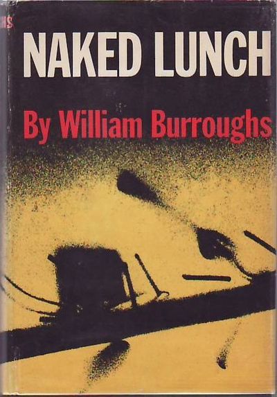 I flipped to the back and noted it was a Grove Press book. I thought – “What?” Let’s be clear: this is an ugly dust jacket, and unlike the publisher’s other jacket designs. Tacky stuff, really, and nothing like the famous Roy Kuhlman dust jackets that were part of the audacious Grove Press “look.” Here is his famous cover for Naked Lunch: