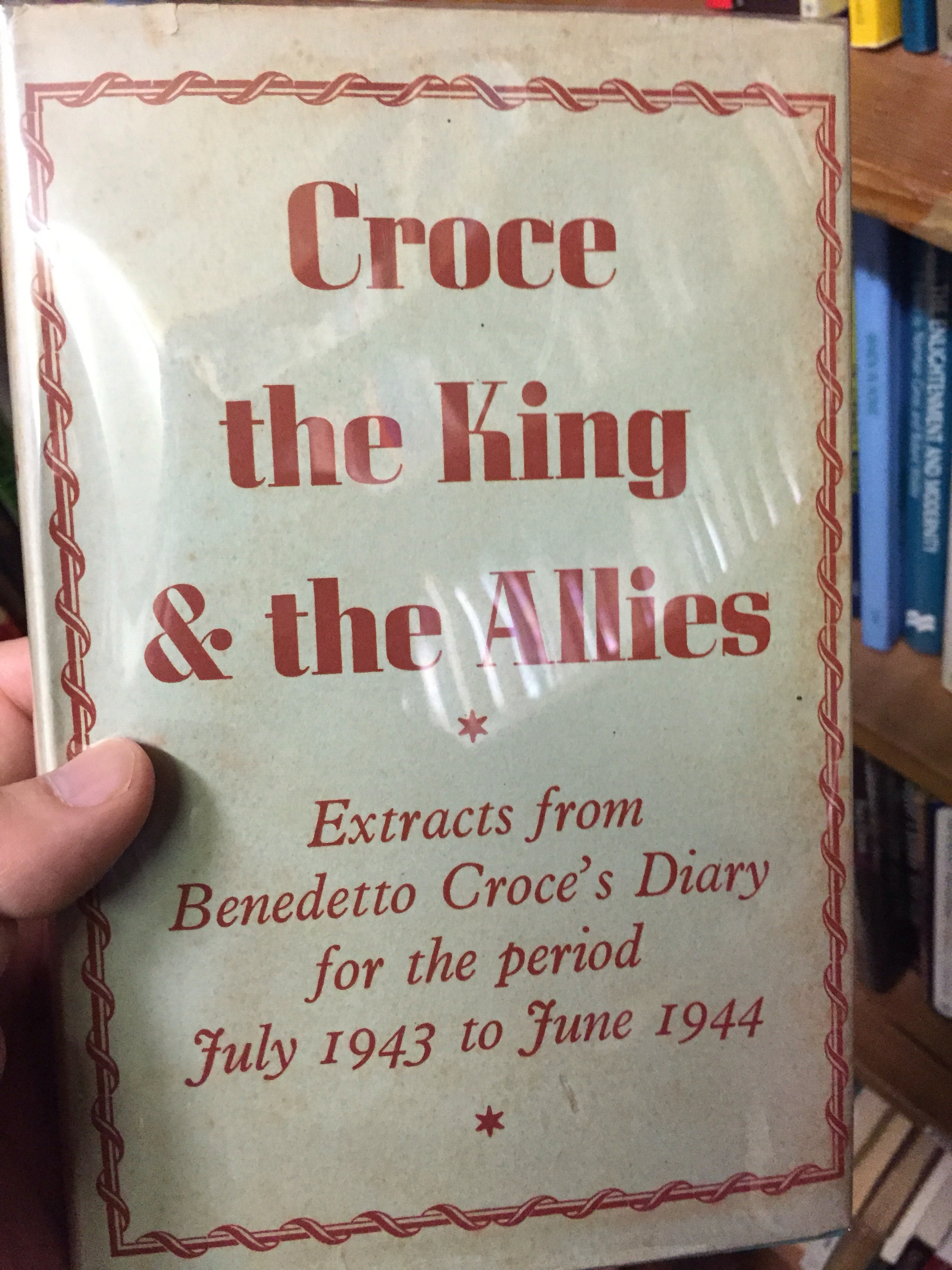 Lastly, I came across a real gem: a U.K. edition of WWII era writings by Benedetto Croce, who was much admired in the U.S. & U.K. as a critic during the interwar period. I had never seen this work before. It was a magnificent find, and worth a more extensive write up. I hope to read it soon and prepare one, but first I must dig out some of my other Croce books and research their publishing history……